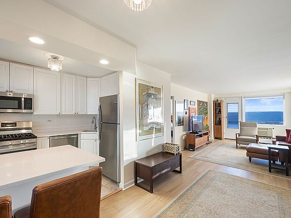 This updated one bedroom is a rare find, offering views of the sunrise and sunset. There are eastern views overlooking the park and western views of the river and Palisades. The windowed kitchen has been updated featuring stainless steel appliances and quartz countertops. There are beautiful Terra Legno floors throughout and the double exposures provide a beautiful cross breeze throughout the home. Unwind and relax on the west facing balcony while enjoying the colorful sunsets. This is a beautiful, light and airy space that is not to be missed. Washer/Dryer allowed.