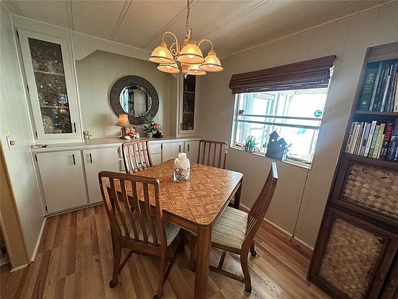 A two bedroom, two bathroom doublewide unit, ready to move in! You only need your suitcases for this furnished home! The home features laminate flooring throughout with tile in the bathrooms. The primary bedroom is large with an en-suite bathroom and walk-in closet. The guest room and bathroom are also very spacious. The circular kitchen give plenty of counter and cabinet space. The dining room features wonderful built in cabinetry. One of the best features of the home is the enclosed Florida room. With many windows and tons of natural light, it is the most used spot in the house! Outside you will find an extra long driveway that allows space for seating. There are also two sheds. Around the back is an outdoor shower! This home is located in Japanese Gardens, an active, resident owned 55+ community with many amenities such as pickleball, bocce, and pickleball courts. There is also a beautiful resort style pool and spa, a large clubhouse, and an activity room with billiards tables and a library! The community is the perfect location - about 1 mile to Manasota Beach!