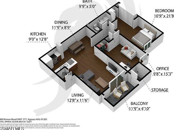 - Total interior livable area: 811 sqft