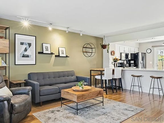 Charming 2bd/1.5 ba Townhouse home in the peaceful Glen Park community. This nicely updated home boasts newer wood flooring, and an updated kitchen with quartz countertops. Relax on the spacious patio and enjoy the tranquil surroundings of the greenbelt and common areas. Two parking spaces include a side-by-side garage with storage and an additional parking space. This property lies within the highly acclaimed La Mesa school district and is just a 15-minute drive to the beach. This convenient location is just a short drive to shops restaurants, and Lake Murray. First class amenities include: Pool, spa, playground, community room,and pickle ball court.