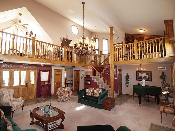 Unique and elegant, this home stands apart from the others. Situated on 2 1/2 acres with 5 bedrooms and 4 1/2 bathrooms, this is an enormous piece of property with a ton of living space. There is an oversized garage that has another 45'X 15'attached RV garage. The exterior is masterfully crafted with custom rock and decks that have endless views. Enter into a bright living room with a fireplace and vaulted ceilings. Upstairs there are 2 sitting areas, one of which is surrounded by built in bookcases. The giant master bedroom offers a walk-in closet and a large bathroom with double sinks and a walk-in shower. Entertain large groups in the oversized dining room connects to the kitchen creating yet another large living space. This quality home and the beautiful land that it sits on is