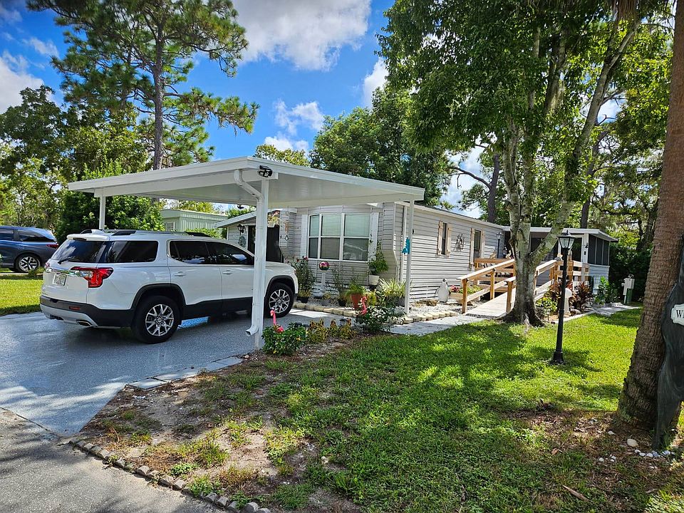 IMMACULATE TURNKEY FURNISHED HOME SITUATED IN BEAUTIFUL EVANRIDGE 55+ COMMUNITY. PEACEFUL SETTING MATURE LANDSCAPING AND VERY AFFORDABLE LAND LEASE $550 MONTHLY. 2 BEDROOM 2 BATH LOVINGLY CARED FOR HOME. UPGRADES INCLUDE ROOF, CENTRAL AIR SYSTEM, FLOORING AND BATHROOM, LAUNDRY IN HOME. COMPLETELY FINISHED INSULATED LANAI. OUTDOOR FEATURES COVERED PARKING, HANDICAP ACCESSABLE RAMP, 2 SHEDS NICELY LANDSCAPED. VERY RARE OPPORTUNITY MOVE IN READY HOME IN PEACEFUL AFFORDABLE SETTING.