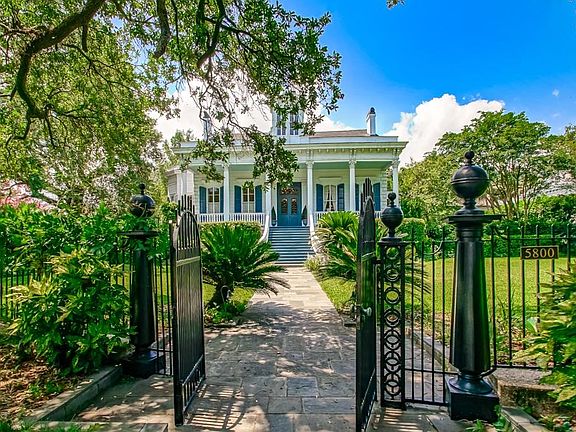 Iconic St. Charles Avenue mansion in prime location renovated by Michael Carbine. Classic center hall design boasts sweeping entry stairs and grand covered porch with Corinthian columns. Exquisite architectural details galore include soaring ceilings, elaborate plaster friezes and ceiling appliqués, sparkling chandeliers, double and triple crown molding, handsome millwork, carved marble mantles, gracefully curving staircase, gleaming hardwood floors. Spectacular entry hall leads to expansive formal living room with built-in bookshelves, illuminated by a pair of towering floor-to-ceiling windows overlooking front porch and emerald grounds. Spacious formal dining room perfect for entertaining with adjoining wet bar and butler’s pantry. Fabulous sunroom offers three walls of plate glass windows with breathtaking views of private grounds. Chef’s delight kitchen with top of the line stainless steel appliances, stone counters, large island, tons of storage space and huge pantry, leads to breakfast area illuminated by dramatic trio of French doors opening onto large covered balcony. A second living room across the hall from the formal living room lends flexibility to floor plan and may be incorporated into primary suite if desired. A well-appointed study leads to the powder room. Extraordinary main floor primary suite boasts a spacious bedroom, luxurious marble bath with double vanities, soaking tub, separate shower, water closet, plus two separate enormous closets, dressing room, private laundry room. 2nd floor includes large den, three additional bedrooms with en suite baths, plus a 2nd office with attached full bath. Basement includes finished recreation space, bath and a half, kitchen, laundry room, wine cellar, workshop, plus tons of additional storage space. Fully fenced, immense corner lot for the ultimate privacy. Fenced lushly landscaped grounds with large pool. Two car garage plus additional parking behind electric gate. A rare opportunity!