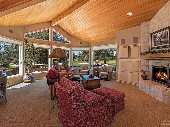 Spectacular golf and mountain views! 19 Bunker Lane is an exceptional home that exemplifies the Sunriver lifestyle with stunning design elements including soaring cedar ceilings, gleaming oak flooring, gourmet kitchen, and spacious dining area. The open great room is accented with a picture window that frames the 3rd green of the Woodlands Golf Course and Mt. Bachelor. Well-appointed layout with 3-master suites offering fantastic separation of space. Take in over 300-days of Central Oregon sunshine from 3-expansive decks. Home is nestled on a private, moderately treed lot on a quiet cul-de-sac in the prestigious North-end of the community. Oversized 3-car garage with built-ins and a 375 square foot workshop allow plenty of space for your outdoor gear. You will appreciate the thoughtful touches throughout, including an electric dumbwaiter from the garage to 2nd floor. Create your Sunriver legacy!