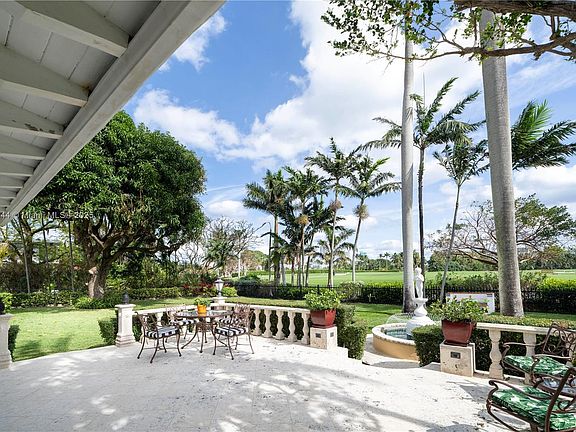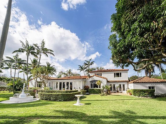 Available from Dec 1, 2025 to June 1, 2026. Live the Country Club Lifestyle! Grand Mediterranean style residence directly on prestigious La Gorce Country Club Golf Course. Nestled on an oversized corner 14,650 SF lot with 125' on the golf course, East to West exposure, stunning fountain, and towering palms & mature trees. Perfect for entertaining with 2 expansive patios! Offering classic architecture & timeless character, chic details, sun drenched interiors, Great Room with soaring high 12' ceilings, fireplace, & an open eat-in gas kitchen. Enjoy a 2-car garage & separate laundry room. Roomy easement on the South side of the property that separates you from your neighbor, provides another 20' of golf views, & can be used for ample guest parking! Gorgeous Golf Course Views!