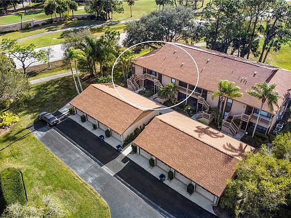 Pride of ownership shows in this adorable condo overlooking the 17th fairway at Palm Aire. Everything has been updated. Both kitchen and baths have granite countertops and new cabinetry, there is a built-in wine rack, and tile flooring. This end unit is bright and cheery with an eat-in kitchen, dining room with bay window, and a dry bar in the dining room with granite countertop, shelving, and storage below. The home comes with an oversized, detached garage which is large enough for your automobile and golf cart. This building got a new roof in 2019. Additional improvements include Trane A/C in 2018, the electrical panel was updated in 2019, & new water main shut off & kitchen plumbing in 2020. The community pool is in close proximity and it is just a few blocks to the Palm Aire Country Club Clubhouse (You'll be able to join the Palm Aire Country Club with several membership options ~ tennis, golf, social & dining ~, if desired. Membership is optional.). The current owners are meticulous and have taken loving care of this home. Simply an unbeatable location just minutes from some of the best shopping and dining Sarasota has to offer including the Mall at UTC and surrounding shopping, restaurants, & theaters. Upscale grocery markets are just minutes away. Only about 20 minutes to Sarasota-Bradenton International Airport (SRQ) and beautiful Gulf of Mexico beaches & St. Armand's Circle are approximately a 30 minute drive.