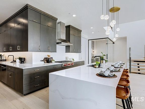 Perched on a rim homesite with sweeping views of Boise and the foothills, this Rosato home impresses with striking features like the floating staircase and a wall of large, reaching windows. Step from the foyer into the great room, where dual multi-slide doors frame the view and invite you to enjoy the covered patio. Steps away, the chef’s kitchen features Wolf and Sub-Zero appliances and a sleek glass-enclosed wine room. On the main level, the primary suite is oriented to the view, with oversized windows, a high-end bath with a freestanding tub, a generous walk-in closet, and direct access to the laundry room. High in the Boise Foothills, Harris Ridge is a boutique community offering breathtaking views of the Barber Valley & Boise proper. This exclusive collection of homes enjoys luxurious amenities, miles of nearby recreation, & prime access to downtown Boise. Home is to-be-built. Photos similar.