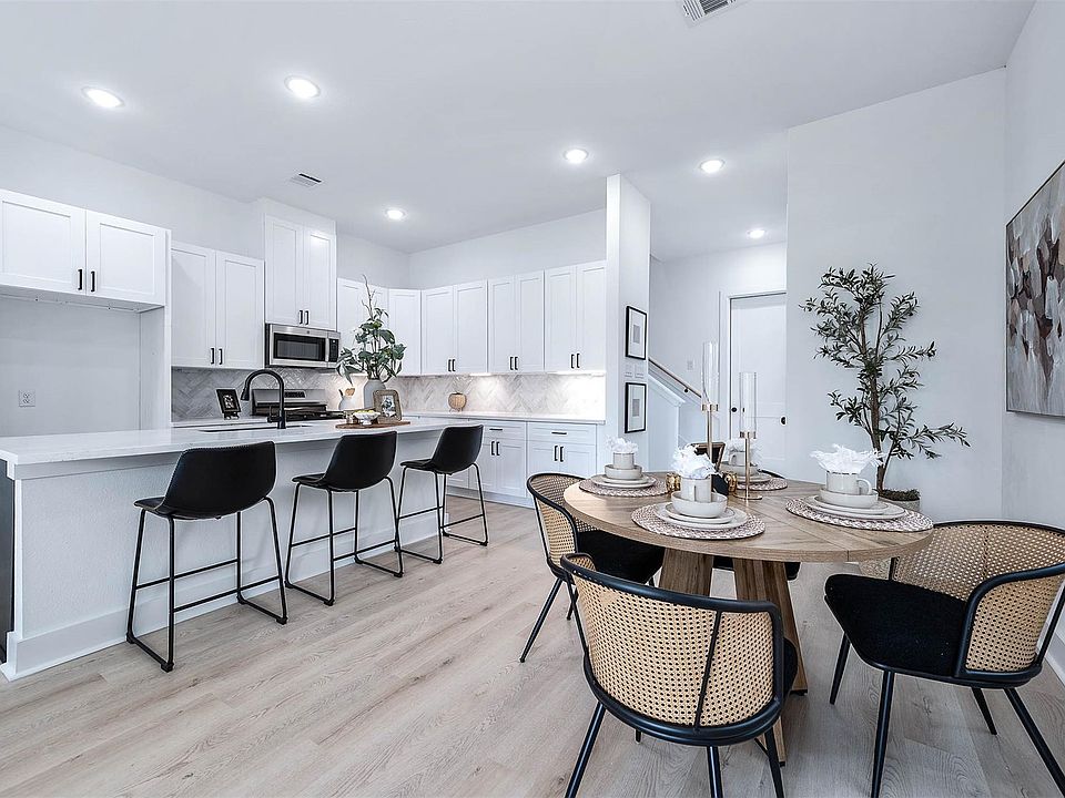 Step into modern luxury with this brand-new home located just minutes from Downtown Houston Offering 3 spacious bedrooms, 2.5 bathrooms. This thoughtfully designed home combines sophistication with comfort. You are welcomed by a bright open-concept layout with high ceilings, recessed lighting, and luxury vinyl plank flooring throughout the main living area. The chef-inspired kitchen showcases sleek white shaker cabinets, quartz countertops, a large island with bar seating, and black matte fixtures, all accented by a stylish herringbone backsplash. The primary suite is a peaceful retreat featuring plush carpeting, oversized windows, and a spa-like bathroom complete with dual vanities, and floor-to-ceiling marble-style tile. Enjoy outdoor living with a private fenced backyard, ideal for pets & gatherings. With easy freeway access to I-610 & I-45, this home offers unmatched convenience. Experience contemporary design, quality craftsmanship, and everyday comfort-all in one location.