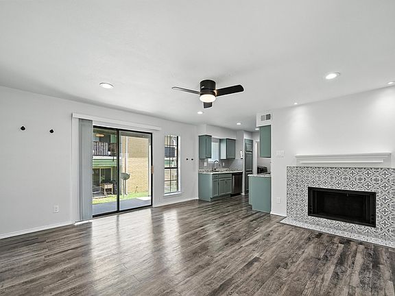 Enjoy modern living with granite countertops, stainless steel appliances, including a Whirlpool refrigerator, Frigidaire dishwasher, stove, and Samsung microwave perfect for easy everyday cooking. Multiple windows provide generous natural lighting. This unit also features a built-in bookshelf, super-size Samsung washer and dryer, bright white recessed lighting throughout, ceiling fans with remote controls, luxury vinyl plank floors, a glass shower door, cozy fireplace, and a back patio ideal for relaxing or entertaining guests.