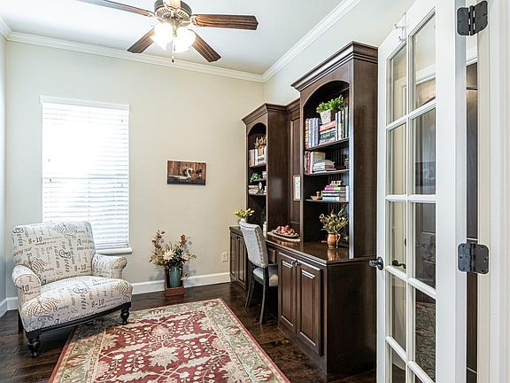 IMMACULATE! 3 Bed, 2.5 Bath w/ Study & Bonus Room! The beautiful entry w/ niche & signature rounded study wall enhance the charm of this home. Gorgeous ceiling treatment, stone fireplace & wood floors in the living room, make an evening at home inviting and relaxing. Open kitchen/dining boasts over-sized island, decorative back splash, granite, BI gas range, SS appliances & floor to ceiling custom cabinetry. The Study w/ french doors, BI desk & closet, and Roomy bedrooms w/ ceiling fans & large closets promise to fill all your needs. Master suite w/ BIG WI shower, jetted tub, dbl vanities, WI closet & TONS of storage invite you to vacation at home. Upstairs bonus room could be used as 4th bedroom w/ its own WI closet & 1/2 bath. Spacious utility room with extra cabinets. Sprinkler system, security system, beautifully landscaped & covered patio too! Walking distance to Mustang's Ball Fields, Playground, Walking Trails, Stocked Pond, City Pool, Library & More! A MUST SEE!!!