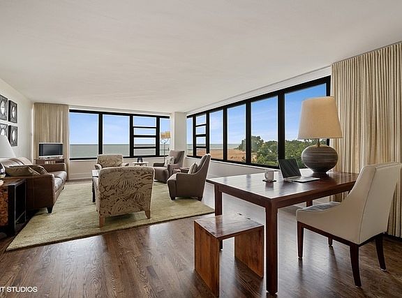 BEACHFRONT LIVING IN THE CITY! This stunning and spacious southeast corner unit overlooks the lake, the sandy shores of Kathy Osterman Beachfront Park and the city skyline. Watch the sunrise from the comfy confines of your master bedroom suite or grab some coffee and head to the living room where the broad expanse of oversized windows offer continuous exposure-on the east and south sides. You will be stunned by full moons and thunderstorms. Remodeled kitchen features custom cabinetry, subway tile backsplash, open shelving storage, granite counter tops, newer tile floors & stainless steel appliances. Plenty of in unit storage with 8 DBL Door Closets, including two in each bdrm plus linen closets in both baths, Custom blinds/drapes, solid wood doors, newer oak hardwood floors thru-out. Building features Laundry, storage, bicycle storage, party room, private garden, rental garage parking, on site management and maintenance AND the engineer lives on-site! Convenient location, walk to Whole Foods, Mariano's or the shops and restaurants on Bryn Mawr and Broadway, CTA Red Line nearby, CTA bus stop right out side. MOVE-IN READY!