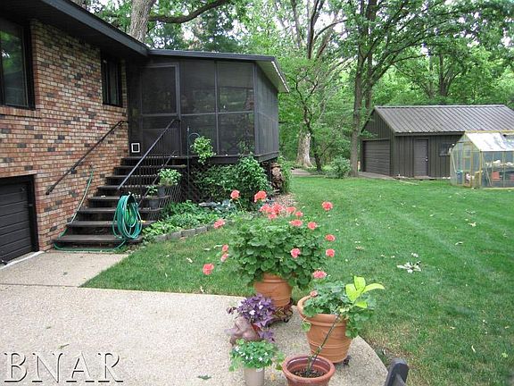 Spacious all brick home with a wood burning fireplace. Enjoy the "Park-Like" setting with many mature trees and view of the pond while sitting on the patio or inside the screened-in porch. This home offers plenty of living space and vehicle space/storage with the 2-car attached garage plus a 2-car detached garage. Updated kitchen with island, tile flooring and corian counter tops. Step right into this wonderful home close to town but with the feel of being miles away.