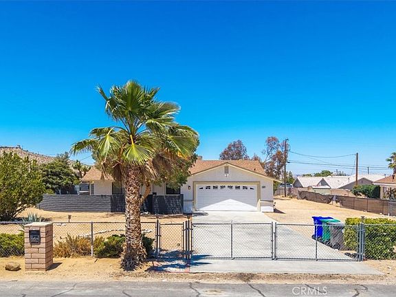 Welcome to this beautifully upgraded home in the highly sought-after Sky Harbor neighborhood of Yucca Valley. Situated on a spacious 0.42-acre lot, this 3-bedroom, 2-bathroom property offers 1,508 square feet of stylish living space, ideal for desert living and entertaining. Step inside to an inviting open-concept layout featuring high ceilings, laminate flooring throughout, and a remodeled kitchen with elegant quartz countertops. Central A/C and heat ensure year-round comfort. Outside, enjoy the ultimate desert retreat with mature landscaping, fully fenced grounds with a gate, and plenty of room to relax or host guests. The backyard boasts a private spa, outdoor shower, cowboy tub, fire pit, and built-in BBQ area, perfect for soaking in starry desert nights. Additional highlights include a 2-car garage, RV parking potential, and proximity to local parks, shopping, and everyday amenities. Don’t miss the chance to own this exceptional desert gem in one of Yucca Valley’s most coveted neighborhoods!