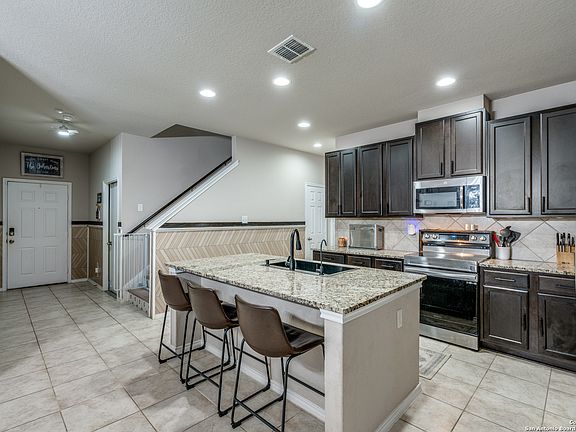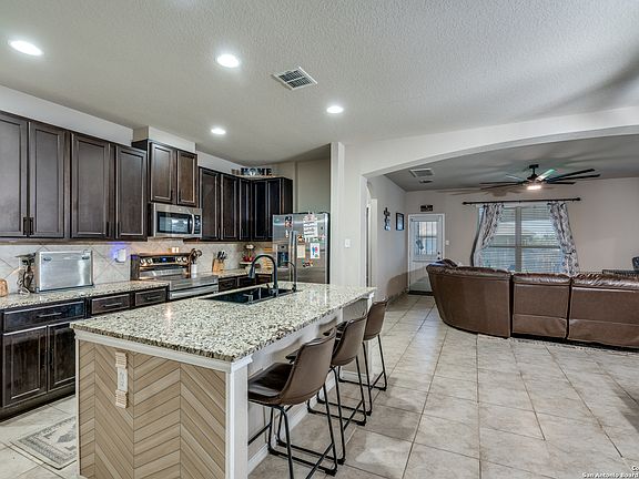 Discover this spacious 5-bedroom, 3.5-bath home featuring the rare convenience of dual primary suites on the first floor-perfect for multi-generational living or hosting extended family. Enter inside to find an updated modern interior with fresh flooring, clean lines, and thoughtful upgrades throughout. Each bedroom is equipped with individually controlled air vents, allowing everyone to set their own comfort level with ease. The backyard is an entertainer's dream, boasting a well-designed above-ground pool and a stylish outdoor canopy retreat that lights up in the evenings-ideal for relaxing after a long day or creating memorable gatherings with family and friends. Located near Randolph AFB and Ft Sam Houston, with quick access to shopping, dining, and local entertainment, this home blends comfort, convenience, and lifestyle.