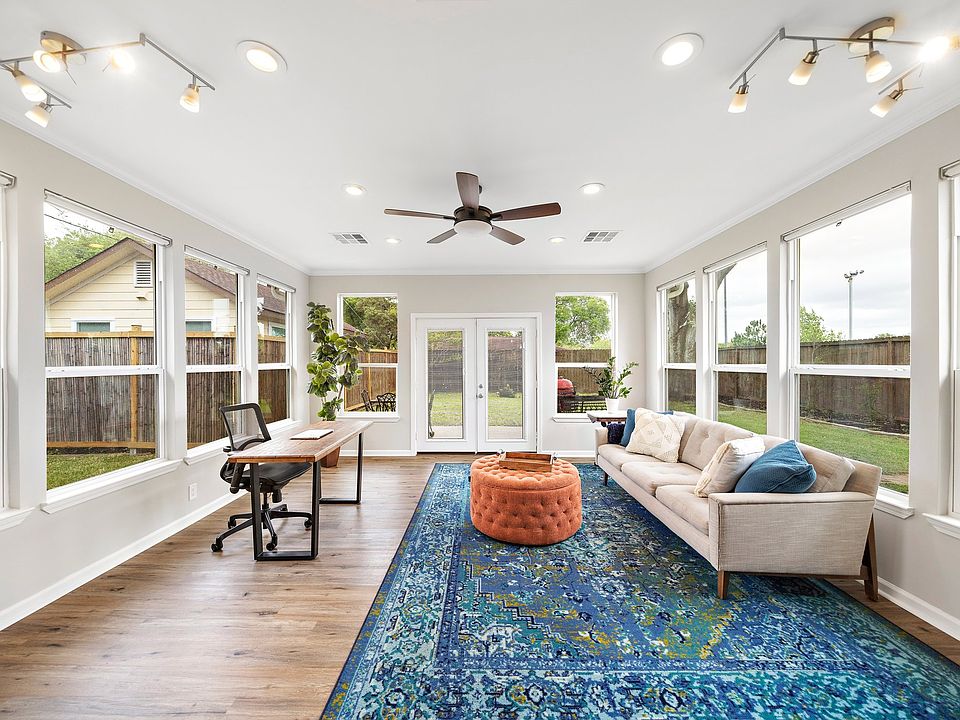 This fully renovated corner-lot home features three bedrooms & two full bathrooms, ideally located next to the neighborhood park & just minutes from the Galleria, Meyerland & the Medical Center. At the center of the home, the sunroom offers an abundance of natural light from surrounding windows, creating a warm and inviting space. The kitchen is equipped with updated stainless steel appliances & beautiful marble countertops, while the spacious private fenced backyard includes a concrete pad perfect for summer barbecues & outdoor living. Additional highlights include a two-car garage with extra storage space near the washer & dryer. There is another unit on the property with its own private fenced portion of the backyard; however, both units share the side yard access point. Lawn maintenance is included in the rent. Electricity & water are initially paid by the landlord, then split & billed to the tenant monthly. The tenant is also responsible for the security system fee of $30/month.