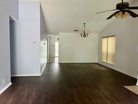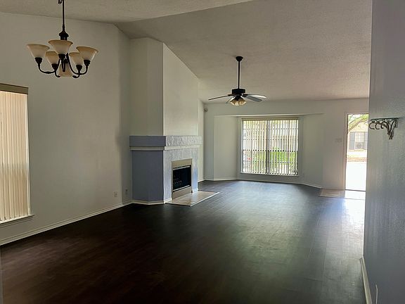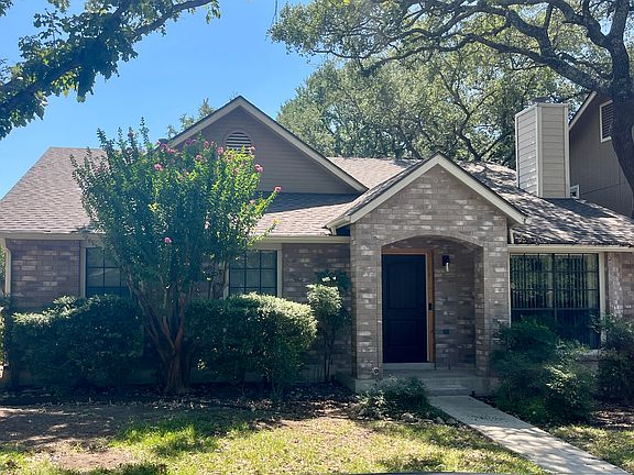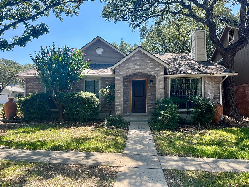 First-time rental home located on a tree lined corner lot at the back of the neighborhood where there is less traffic and occasional deer wandering around. This brick, one story home features an open living and dining space with a cozy fireplace, picture window, and vaulted ceilings. Kitchen has island and leads to a secluded, private xeriscaped backyard. Primary bedroom retreat has vaulted ceilings, plenty of closet space and a large bathroom. Separate laundry room with extra space for storage. Garage located in the back of the home for easy grocery drop off into the kitchen. Home is move-in ready and perfect for anyone who wants space but without the upkeep of a large yard. Animals are accepted and owner has left fridge for tenant use. Near I-10, 1604, UTSA, and Medical Center.