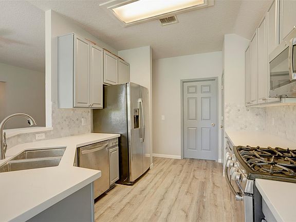 Discover this charming 1-story rental in the desirable gated community of Canyon Gate at the Brazos! Featuring 3 bedrooms and 2 bathrooms, this freshly painted home offers a welcoming open layout with upgraded waterproof vinyl flooring throughout. The renovated kitchen boasts new cabinetry, stainless steel appliances, and a stylish tile backsplash with plenty of counter space. The spacious primary suite impresses with vaulted ceilings, dual sinks, a deep soaking tub, tiled walk-in shower, and a custom walk-in closet. Relax or entertain outdoors with a huge fenced backyard and covered patio. Zoned to highly rated Lamar schools, including George Ranch High School, with quick access to Hwy 59 and nearby shopping and dining. This one is move-in ready and waiting for you!