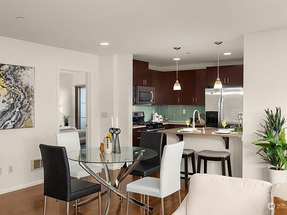 Modern elegance and unmatched convenience await you in the heart of Ballard! This stunning condo, located in The Danielle—a boutique building with just 31 units—offers the perfect blend of style and functionality. Featuring 1 bedroom, a versatile den/office, a spacious living and dining area, and a bright corner layout filled with natural light, this home has it all. Premium finishes include a gas range, stainless steel appliances, and hardwood floors throughout. Enjoy additional perks like a rooftop view deck, wide-angle city view, and a secured parking space. Steps from supermarkets, public transit, and Ballard’s vibrant amenities, with a quick commute to Seattle. No rental cap and great HOA value. Your dream urban oasis is waiting!