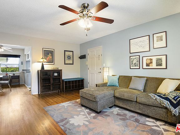Quiet and Private 2+1, top floor unit w/only 1 shared wall in the highly desirable Cameo Woods community! Open & bright kitchen with granite counters, stainless steel appliances & abundant counter space. Lovely living room with tree top view. Nice size bedrooms with upgraded sliding closet doors. Master bedroom with organized closet. Updated bathroom with pedastal sink, tile floor & tile tub surround that goes to the ceiling. Hardwood floors in living room, dining room & kitchen, wood blinds throughout & upgraded ceiling fans in living room, kit, dining room & master bedroom. 1 car private gar included. Abundant storage. Easy street parking for 2nd car & guests. Complex features 24hour guard, pool, 2 hot tubs, rec room, tennis court, community garden & dog park.Very desirable Culver City adjacent location. Close to Metro Rail, Beaches, shopping centers, Culver City Stairs, Bike path, Baldwin Hills Recreation Center, Rancho Cienega Sports Complex and Kenneth Hahn State Recreation Area