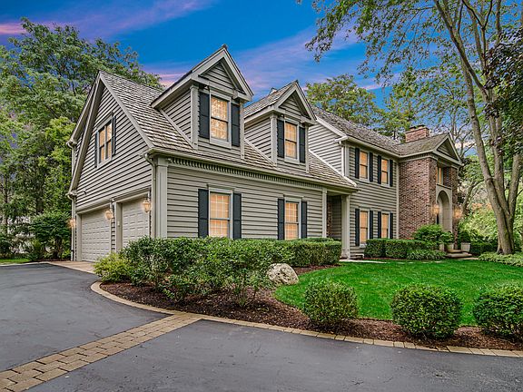 Exquisite Custom Home with Unmatched Privacy. Experience luxurious living in this custom-built home featuring 3 levels of sophistication. Freshly painted interiors and exteriors complement the dramatic entry with marble flooring, hardwood floors, and elegant finishes. The formal dining room and elegant living room with a modern fireplace offer perfect spaces for entertaining. The kitchen boasts Dutch Made cherry cabinets, granite countertops, high-end appliances, and an oversized island, while the sunny breakfast area provides picturesque views. A spacious family room with built-ins, first-floor office, and well-equipped laundry room add convenience. Upstairs, the primary suite features tray ceilings, a cozy fireplace, two walk-in closets, and an ultra-bath with high ceilings, a steam shower and Jacuzzi tub. The finished lower level includes a rec room, extra bedroom, full bath, custom wine cellar, and storage. 3 zone heating and cooling systems. Energy-efficient home with recent upgrades. Private wooded over an acre lot with mature trees, custom brick patio, shed and playset. Located in the desirable Stevenson High School district. This home combines elegance, comfort, and modern amenities, offering a private retreat close to shopping, restaurants, and expressways. A rare find!