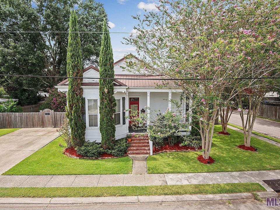 Precious Cottage Style Home in the Garden District of Plaquemine, Louisiana. This charming home is located on a desirable corner lot. If you are looking for a VERY spacious 2 Bedroom home with a front porch in the heart of Plaquemine, look no further!! The moment you enter this home you are welcomed by this home's unique character with 11ft ceilings and wood floors throughout the home.The living room features a bay window with crown moulding. The kitchen has slate tile floors, granite tile counters, island, double stacked cypress cabinets, stainless appliances and designer backsplash. There are 2 bedrooms in this home and they are HUGE! The master bedroom also features 11ft ceilings and a bay window ~ perfect for a sitting area. The master bath is sure to impress! Custom Tile shower, jetted tub with tile surround, slab granite countertop, custom framed mirror and nice sized walk-in closet... A RARE FIND! Complete with a quaint fenced backyard for you to enjoy. Don't miss this charming show stopper! NO Flood Insurance required.