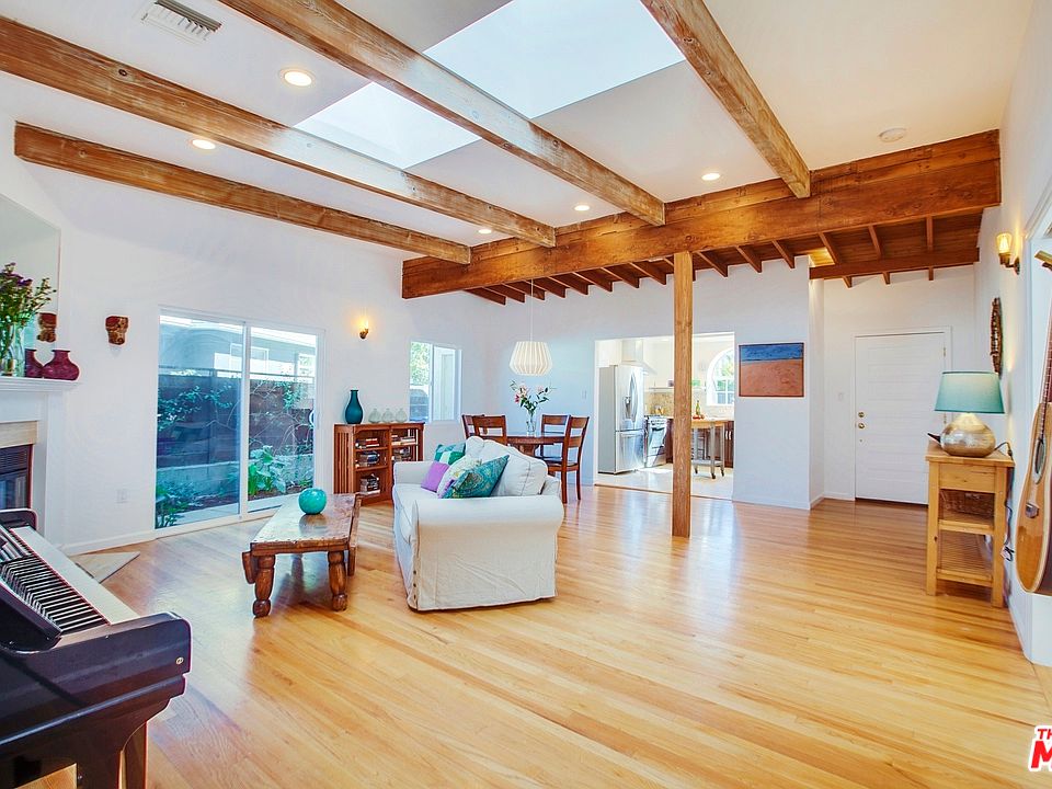 NEW PRICE!!! Totally unique, sunny, open plan home on pretty, quiet street in one of the most desirable areas of Westchester, Westport Heights. Many skylights throughout fill this home with natural ambience. Double paned windows. 15 ft. ceilings and clean lines with natural wood beams enhance spacious living room w/ gas fireplace & sliding doors and amazing air flow. Open kitchen w/ beamed ceiling, newly refinished cabinets, all S/S appliances, granite counters/recessed lighting + laundry room & 1/2 bath off kitchen all with marble tile floors. Generous master bed has 15 ft. ceilings, more skylights, cool loft area & back garden access. 2nd bed has lots of closet space and sliding doors to private, drought tolerant butterfly garden with tons of room to play and entertain. Cute 3rd bedroom with chalkboard wall. Central A/C. Huge floored attic space. 2 car garage + driveway parking. Central location for beaches, DTLA, LAX and freeways. A very special property in a wonderful neighborhood!