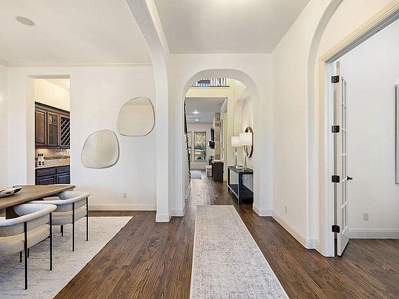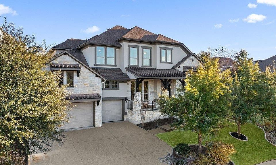 Nestled within the gated enclave of Davenport Summit in Sweetwater, this stunning Drees Custom Home combines timeless elegance with modern comfort. Spanning an impressive 4,602 square feet set on over 1/3 of an acre, this meticulously maintained home offers space and privacy. From the moment you step through the striking Cantera metal door, you're greeted by freshly painted walls, rich solid hardwood flooring and wood plantation shutters that add warmth and sophistication to every corner. The main level is thoughtfully designed with a dedicated office featuring built-in shelving, a spacious primary suite and a private guest ensuite with a walk-in shower, while upstairs offers three additional bedrooms, a media room and a game room outfitted with a wet bar—perfect for hosting friends and family. The chef-inspired kitchen will elevate your culinary adventures, boasting a Kitchen Aid cooktop, a generous center island, and an abundance of high-end cabinetry, complete with oversized pot-and-pan drawers. A butler’s area and a walk-in pantry ensure everything has its place, making both cooking and entertaining a breeze. Step outside to discover a backyard oasis with endless potential. With no steps leading to the yard and plenty of room to add a pool, this space is ready to be transformed into your personal retreat. Additional recent updating includes full exterior painting, added water softener with filtration system and updated water heaters. Located in the amenity-rich Sweetwater community where residents enjoy two beautiful resort style pools, a community only gym, pickleball, sand volleyball and basketball courts, a dog park, numerous pocket parks throughout, miles of hiking and biking trails and community sponsored events and activities. Easy access to the lake, airport and downtown. Located in acclaimed Lake Travis ISD.