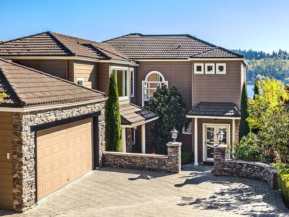 Lakeside Living at its best! Walls of windows frame stunning views of Lake WA and Mt. Rainier on 60 of waterfront. Ideal floorplan and smartly designed spaces: open great room w/ soaring ceilings flows into gourmet kitchen w/ eating bar and large entertaining deck. Main floor den and guest suite. Upstairs, 3 more en suite bedrooms including fabulous view master retreat. Host the crowd on the lower level for movies, hot tub or game night after enjoying a day on the lake. Radiant. Alluring. Exceptional.