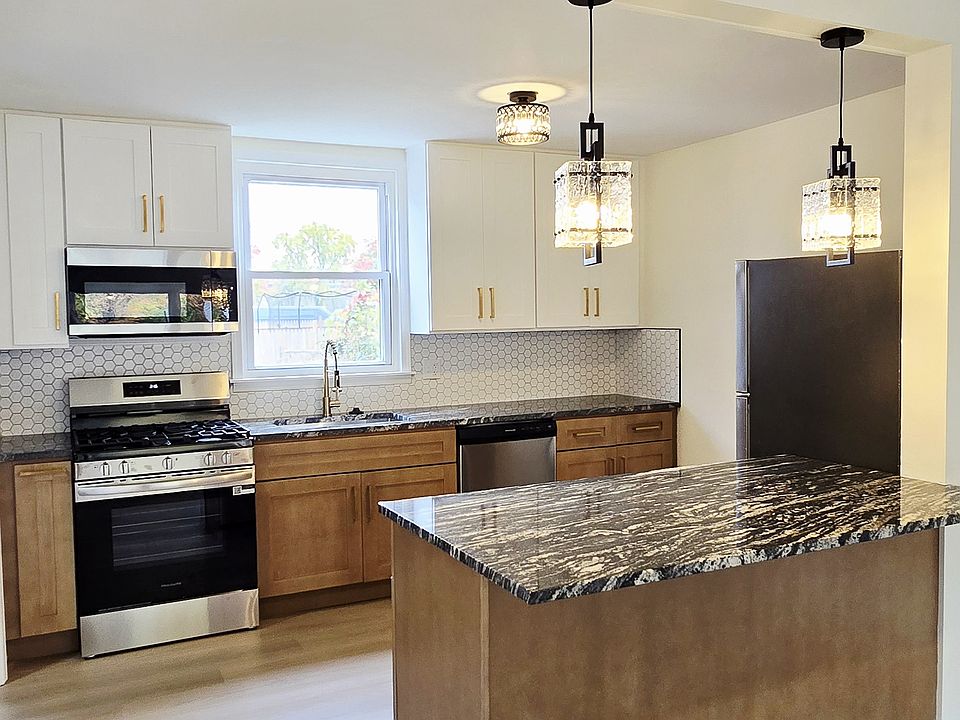 Welcome to your dream home! This beautifully renovated house provides a comfortable living experience. The house features a new kitchen with brand new granit countertops, stainless steel appliances and brand new kitchen cabinets. Gorgeous vinyl plank flooring throughout the house. Renovated bathroom. Brand new Central air and heat. Specious fanced in backyard. Washer and dryer in the laundry room. Freshly painted. New doors and windows. First month rent and deposit. Background check. Great neighborhood near parks, shopping centers and schools. Available for move in now.
