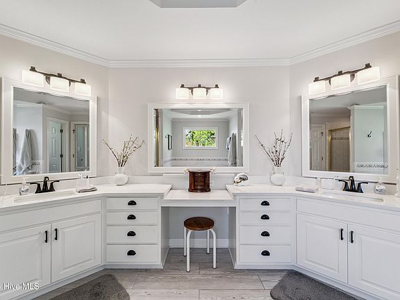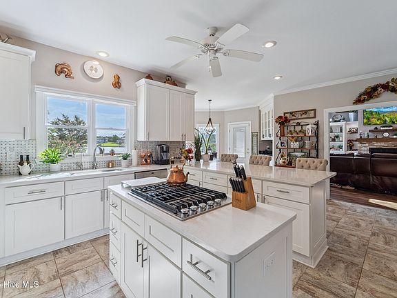 Welcome to this stunning home in Fairfield Harbour, a premier golf and waterfront community in New Bern, NC, offering exceptional amenities including an 18-hole golf course, marinas, tennis courts, pickleball, a dog park, fishing pier, walking trails, and a vibrant clubhouse. Perfectly situated on a protected harbor with over 5 ft. of depth at the dock, this stately residence offers captivating water views and the opportunity to watch boats travel to the Neuse River from nearly every room.