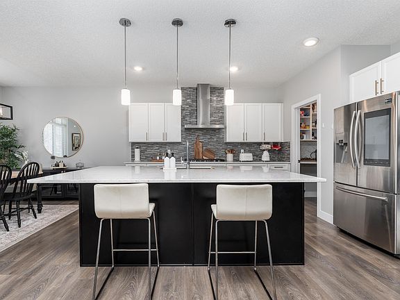 Stunning 2-storey home located in Keswick on the River featuring a HUGE BACKYARD, BACKING GREEN SPACE, beautifully maintained and full of upgrades! The main floor offers a den with double-sided fireplace shared with the living room, plus luxury vinyl plank and tile throughout. The chef’s kitchen features built-in stainless steel appliances, quartz countertops, white cabinetry, glass tile backsplash, a walk-through pantry, and custom mudroom. Upstairs offers a vaulted bonus room, wide hallway, 2 spacious bedrooms with walk-in closets, and a stylish main bath. The primary suite boasts a walk-in closet and spa-like ensuite with double vanity, soaker tub, and oversized glass shower. The NEWLY FINISHED BASEMENT includes an IN-LAW SUITE with a 4th bedroom, living space, and kitchenette, perfect for extended family or guests. Additional features: tankless water heater and central vac rough-in. Close to schools, shopping, trails, and quick access to Anthony Henday. A perfect blend of luxury, space, and location!