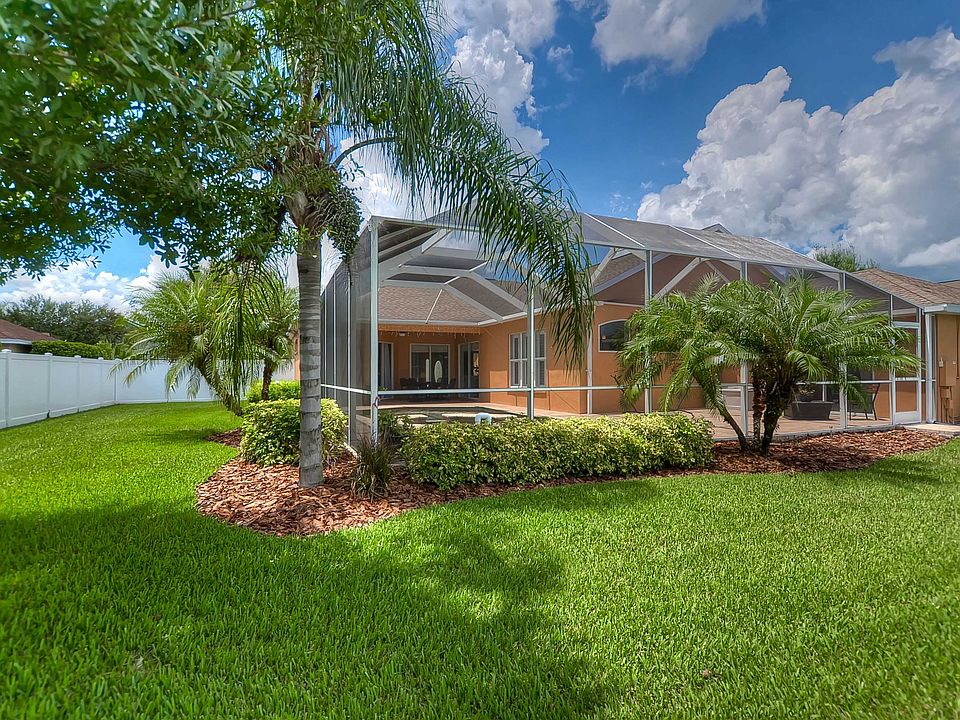 Perfect Sunrise "Savannah III" home in the wonderful Parkside Village community in Fishhawk Ranch! You will love all that this home has to offer including large 1/3 acre lot, no CDD (almost unheard of in the Fishhawk Ranch boundary), a fully fenced in backyard, & short walk to the 'A' rated Bevis elementary! With the exterior newly painted in 2015, this home shows like a dream! Inside the front door you will appreciate the wood floors & plantation shutters that accentuate the formal rooms! Enter the office through double French doors & notice more wood floors & plantation shutters! The large eat-in kitchen is open to the family room & features 42" maple cabinets topped w/crown, Corian counters, island, tumbled tile backsplash & stainless appliances! What a great gathering place! The family room w/wall of windows, built-ins accented w/crown, wired for surround sound & cathedral ceiling is the perfect informal space to spend time w/family! The master suite of this home is great, offering added privacy w/small hallway! With tray ceiling, slider to the lanai & 2 walk-in closets & attached bath offering plantation shutters, his & hers sinks, garden tub & separate shower, this is a true retreat! This is a 3 way split floor plan w/2 of the secondary bedrooms w/walk-in closets! At the back of the home is the wonderful bonus room w/tray ceiling, slider to the lanai & wall of windows! This space is at the end of a long hallway so would make a perfect kids' retreat! The spacious pavered lanai w/heated pool & spa has large entertaining areas so bring your friends too!