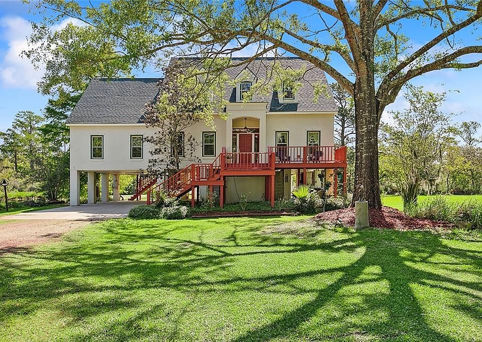 Looking for that Louisiana BEAUTY! Secluded with deep water access for small vessel, with breathtaking views from every room on the main floor with amazing view of sunrise from open kitchen, formal dining and large family room with cathedral ceilings! Large front & back porches. Roof replaced 2021, newer dishwasher, stove & oven. Very large outdoor covered entertaining space includes kitchen, half bath & fireplace! 4 beds plus office, 3 full/2 half baths and a 144sf workshop/storage shed. HOUSE NEVER FLOODED!! Current flood is $686.00 annually! Must see to appreciate!