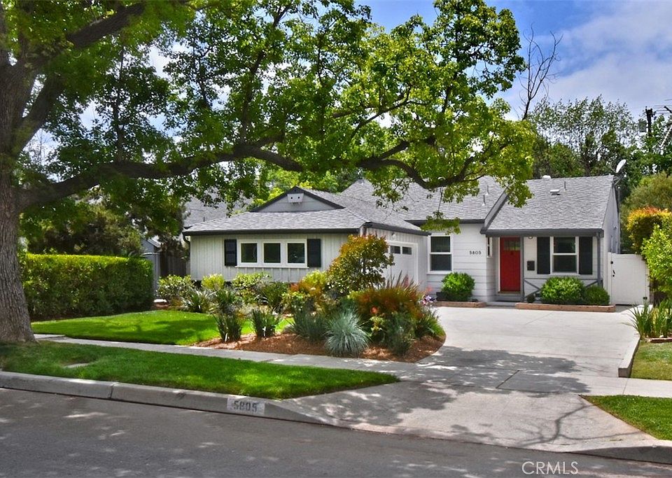 Located on a spacious lot with a serene, park-like atmosphere, in close proximity to a variety of shops and restaurants, this inviting turnkey home is a beautiful and peaceful retreat. Set in a great neighborhood near local parks, award-winning schools, golf courses and easily accessible freeways. This single level home is a great opportunity. The home blends modern amenities with classic charm. Meticulous professional landscaping in the front sets the stage for an elegant interior that surpasses every expectation, with gorgeous wood floors that flow throughout and a sophisticated gourmet kitchen with quartz counters. The living room showcases peaceful views of the backyard through an expansive picture window; French doors bring abundant natural light inside; a corner fireplace creates a focal point. Separated by a center island, the kitchen features a stylish modern backsplash, custom white cabinets, and up to date stainless appliances. A beautifully updated interior that includes an airy primary bedroom and two generous secondary bedrooms, plus a chic, fully renovated main bathroom, complete with a large walk-in shower with a glass enclosure, dual sinks and custom glass tile. The outstanding and picturesque backyard elevate the value and peacefulness of this well-located home, as it takes full advantage of the spacious lot. Manicured with meticulous attention to detail, the expertly landscaped backyard feels like a lush botanical garden. It features a winding meditative pathway lined with mature trees, carefully selected flowers, and shrubs. The front and backyards both feature accent lighting for your evening’s enjoyment. A partially covered patio creates a tranquil venue for relaxing or dining outside. Unwind and enjoy the storybook picture setting in the secluded backyard, enjoy the bird songs, stroll the sidewalks in this established, sought-after neighborhood or take a drive to local venues and everything Sherman Oaks has to offer—the options are endless.