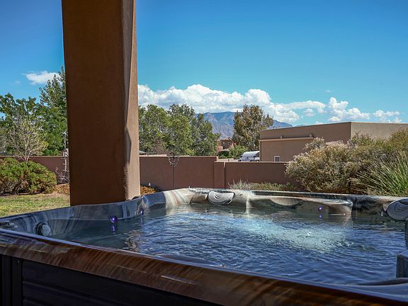 Open House, Sat 12-3. Elegant Santa Fe Style Custom Tuscan on 1/2 acre in coveted Rio Vista. Neighbors to and feels like Corrales near Acequias and Rio Grande River w/o the price tag! The Spacious Attached Casita provides two Opulent Owner's Suites with spa baths, 1 w/ 2 vanities, tub and shower. Sweet mountain views, raised beam ceilings, 2 kiva fireplaces, lighted nichos, vigas, skylights, central vac, bonus room, 4 or 5 bedrooms / 5th bdrm or Office features 3/4 bath with private front entrance. Spacious dream kitchen, pantry, island, desk, granite counters, bar. Huge covered outdoor living VIEW patio! Finished 3 car garage. New Since 2017: roof, solar, HVAC, water heaters, septic system, well pump. 10 Minutes to Cottonwood; 25-30 to Airport.