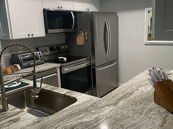 condo in Hideaway Golf and CC. Golf cart parking at your door!!! End unit features, cathedral ceilings, enclosed lanai, All new LG Stainless Steel appliances, new shaker style cabinets soft close doors and drawers, granite counter tops. total interior panted 2025. Situated with tee to green view of #18 and a few short steps to community pool. Brand new clubhouse with fitness center, restaurant and upscale pro shop to meet your every need. Convenient location to all Ft. Myers has to offer. Golf course rated #1in Florida by Golf Advisor and the Hard Tru tennis courts are some of the best in the area. All new electric fixtures, new interior doors with SCHLAGE door hardware and keyless entry. New Remote control ceiling fans in every room. Internet and cable part of HOA. New roof 2025. Carport and Golf Cart parking spot