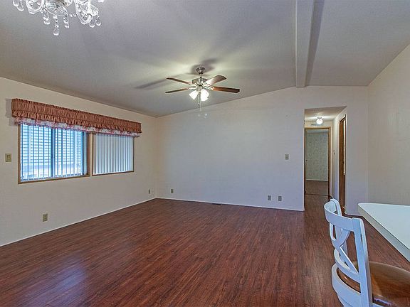 Move-in ready 26x42 2 bedroom 2 bathroom mobile home For Sale in a 55+ land lease manufactured home community. This home sits on an immaculate home-site with low-maintenance desert landscaping. It has on-site covered parking, a matching storage shed, a shingle roof and a semi-private covered front deck. This front entry home's floor-plan has a large front great room that includes the living room, dining room and kitchen. It has vaulted ceilings & upgraded flooring throughout. There is factory overhead lighting in all rooms with lighted ceiling fans in the bedrooms. The kitchen is very spacious and is separated from the dining area by a convenient breakfast bar. The kitchen is full of cabinets and there is plenty of counter space. All of the existing appliances will remain with the home. The laundry room is larger than most and is located between the kitchen and guest bathroom, just inside the back door of the home. The existing clothes washer and dryer are included and there is room for an additional refrigerator or a freezer. The guest bedroom is king-size and includes a reach-in closet with sliding doors. The guest bathroom can be accessed from both the hallway and the laundry room and includes a large vanity and a tub/shower combo. The primary bedroom is also king-size and includes his and her closets and an en-suite bathroom with a 5-foot walk-in shower, a large vanity and a spacious linen closet. Recent upgrades to this home include: - Air Conditioner and Furnace Replaced - Water Heater Replaced - NEW Roof - NEW Flooring - NEW Ceiling Fans NOTE: Those applying for residency in this community must meet the following criteria: This is an age and income-restricted community. Residents must be 55 years of age or older. Maximum annual household income for 2025 shall not exceed: - $35,700 for a single resident - $40,800 for 2 residents - $45,900 for 3 residents - $51,000 for 4 residents Applicants must prove residency in the state of Nevada for the previous 6 months. Applicants should have a credit score of 620 or above. This home has been very well maintained and is ready for immediate occupancy. Monthly home-site rental in this land lease community is only $255.00 per month.
