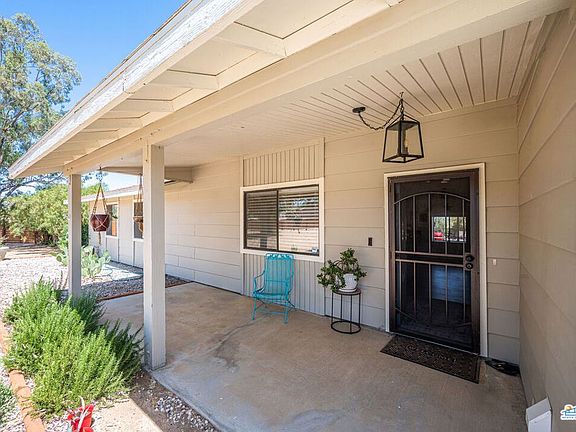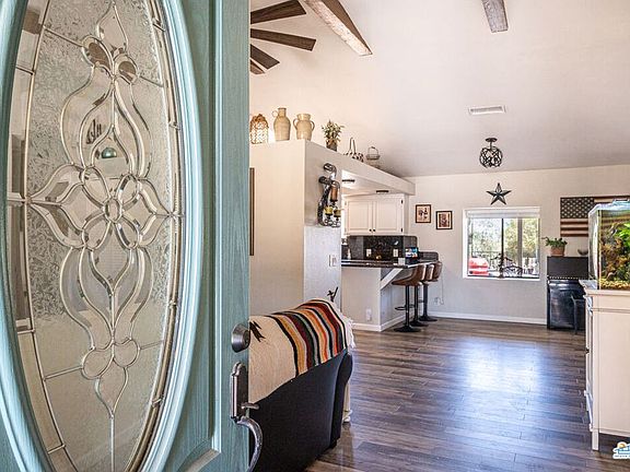 Beautiful remodeled Yucca valley home in the highly desirable Sky Harbor neighborhood is move in ready. This gorgeous 3 bed 2 bath mountain view home on almost 1 acre offers hardwood flooring throughout, beamed ceilings in living room, chefs kitchen with granite counter tops, skylight in kitchen, bar area for entertaining to an open, bright and spacious dining room w fireplace. French door to the beautiful screened in porch to backyard. Bed 1-tile flooring can be used as office or gym, bed 2- tile flooring, spacious guest bath with shower over tub, and master suite offers hardwood flooring, beautiful closet door, built in cabinets, beautiful en suite bath, shower over tub, herring bone tile and extra counter space. French doors from Master bedroom to the spacious backyard with pool, spa and mountain views. Newer AC, swamp cooler, New pool heater, New garage door, everything updated and move in ready. Large beautiful back yard with patio and firepit area, chicken coop with chickens-covered with net and with electric fence, gated dog run and big beautiful pool and spa. Private entertainment area outside by pool and fire pit. Washer-dryer in garage. Fruit trees (lemon, peach, apple) grapevine and olive trees. Easy maintence landscape. RV parking, fenced in yard, Pool & spa fenced in and lots of space. Close to town, shopping, restaurants and Pioneer town. Yes STVR allowed.
