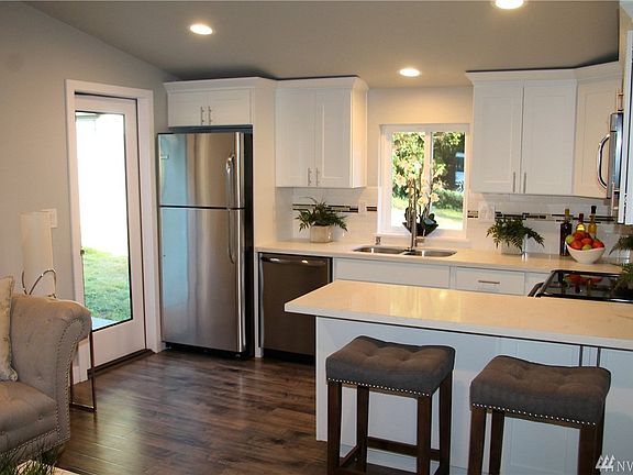 Charming very cute rambler in superb Edmonds location a short walk to the Beach, Features large lot with fruit trees big fenced private back yard; Upgrades include a renovated kitchen with tons of cabinets, tiled floors, laminate thru out living space, all new wiring, recessed lighting, new energy efficient heating. Fully-fenced, level lot great for gardening & outdoor entertaining. Tons of parking for RV and boat. Location Location. Dont miss it its a Rare find in the area..