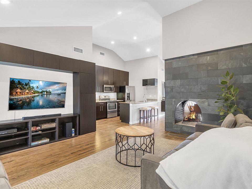This unit is MOVE-IN READY with the washer, dryer, and refrigerator included, along with two covered parking spaces. Community amenities include a resort style pool and spa and HOA dues that cover gas and water.