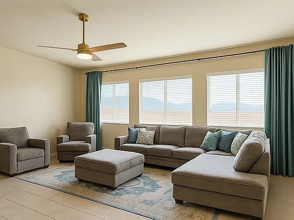 The modern kitchen features sleek stainless steel appliances, a walk-in pantry and gorgeous granite countertops that flow seamlessly throughout the entire home. Enjoy easy to maintain tile flooring in the main living areas, while plush carpeting and ceiling fans provide comfort in each bedroom. The luxurious primary suite boasts two spacious walk-in closets and a private bathroom retreat. Step outside to a beautifully landscaped backyard ideal for relaxing, entertaining, or enjoying warm summer evenings. The property also includes a solar system to help keep utility costs low. Located just minutes from Costco, Sprouts and more!