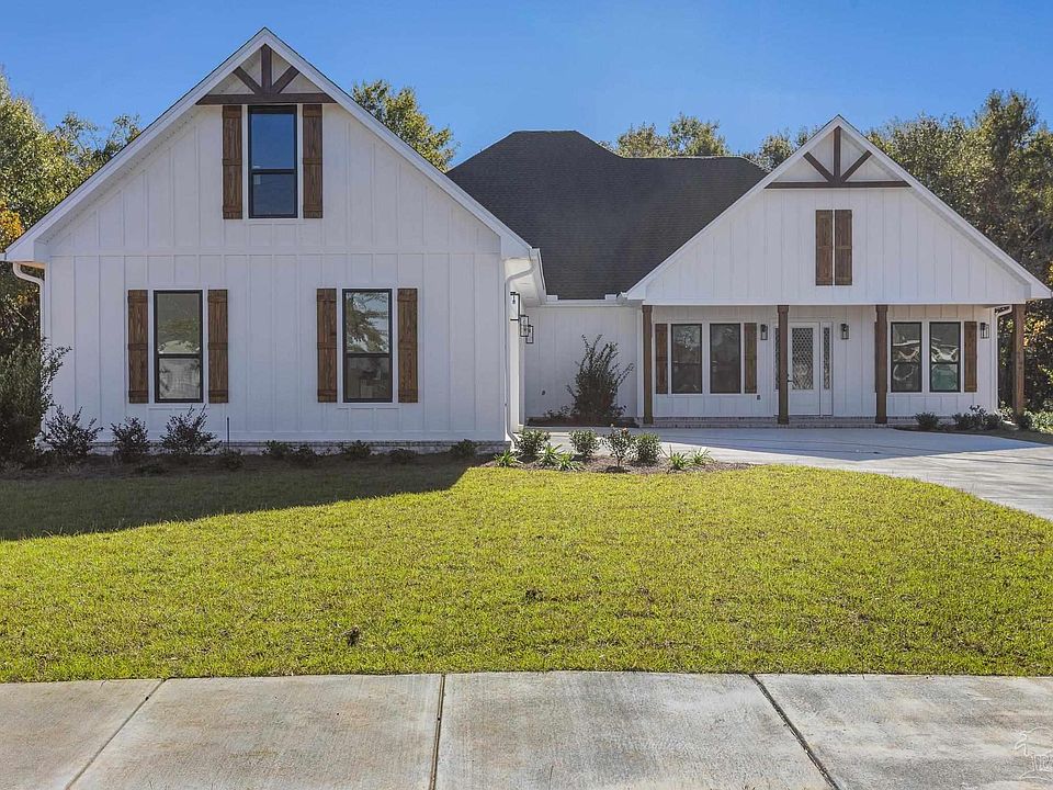 STRIKING NEW CONSTRUCTION!! 5 Bedroom, 3 Full Baths, Up Stairs Uniquely Created Bonus Room & 3 Car Garage. Modern Living + Timeless Comfort! Welcome Home to Your Luxurious Dream Home! Skillfully Crafted and Ornately Designed Residence in Gated Community. Nestled in Wooded Backyard Setting, w/Glorious view! Ready for Its New Owners! CONSTRUCTION Showcases Contemporary, yet Modern Amenities. High-Quality Fiber Cement Hardy Board & Brick with Architectural Roofing. Intricate Custom Features to Allow for a “Care-Free” Lifestyle. Architectural Details Include 10' Ceilings, 8' Doors & 6' Windows (with the Exception of the Main Bathroom Window.) Stained Yellow Pine Beams, Tongue & Groove, Real Wood Shutters & Accent Beams (Stained American Chestnut.) Kitchen Custom Cabinetry w/ Crown Molding Reflects Elegance. Modern Homebuilding Integrating Energy-Efficient Systems / Smart Home Wiring Further Indicates its Forward-Thinking Construction. Bask in a Split-Level Floor Plan with Approx. 2996 Sq.Ft of Living Space, Including 5 Bedrooms and 3 Full Bathrooms (Main Bathroom Sports Brushed Gold Fixtures.) The Chef’s Kitchen Features "Venus" Quartzite “Fantasy Brown” Counter Tops with “Trenton Swap White” Cabinetry, Stained American Chestnut Accents. 36” Hybrid Z Line Electric Oven & Propane Gas Top. Custom Cabinet Hood with Exhaust and an “Eat-In” Island w/ Built-In Microwave. Stainless Steel Appliances (*Buyer to Choose Refrigerator.), Elegant Picture Window & French Doors. Prewired for TV & Surround Sound in Kitchen and Back Patio Which Has 2 Ceiling Fans & Recessed Lighting — Ideal for Entertaining and Family Gatherings. Eloquent Main Ste. Shines With Trey & Beam Ceiling and SPACIOUS Walk-In Closet. Ensuite Bathroom Provides Double Vanity, Shower w/ Mosaic Tiling/Inserts, Double Lighted Vanity, 15' Cabinetry and Garden Tub. Exterior w/Dimmable Can Lights & Mood Ring, Plus Ring Doorbell. Timed Rainbird Irrigation.