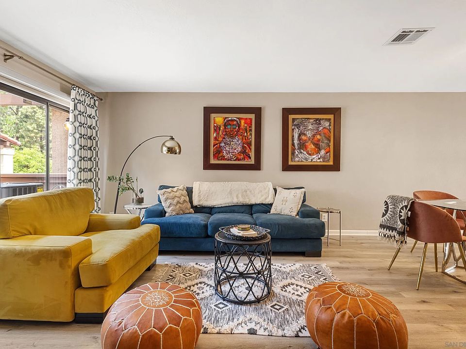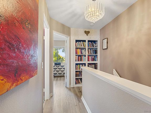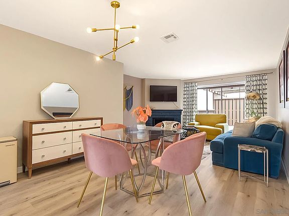 Welcome to 5806 Mission Center Road, Unit B—an elegantly upgraded home in the heart of Mission Valley. This stunning property boasts a modern kitchen with sleek cabinetry, granite countertops, and high-end stainless steel appliances. The open-concept living room is a designer’s dream, featuring Manuel Canovas Paris wallpaper, a cozy fireplace, and custom electric shutters—perfect for entertaining or relaxing in style. Both bedrooms exude sophistication, with the guest room adorned in Thibaut Italy wallpaper and the upgraded guest bath featuring hand-printed Cole & Sons wallpaper. The primary suite is a sanctuary with custom Dwell Studio designs and upgraded closet organizers. Recent updates include PEX piping throughout, a keyless front entry, Ring camera, and Nest thermostat for modern convenience. Step outside to a private deck with serene canyon views, offering a peaceful retreat from city life. The attached one-car garage includes a Tesla charging system, epoxy flooring, and a versatile storage room currently used as a home gym. Located on the edge of the complex for added privacy, this home is just steps from Civita Park, trendy cafes, and shopping. With quick freeway access and proximity to USD, SDSU, local beaches, and more, this prime location truly has it all. Don’t miss the chance to own this luxurious, move-in-ready gem! Property Website: https://view.spiro.media/5806_mission_center_-6669