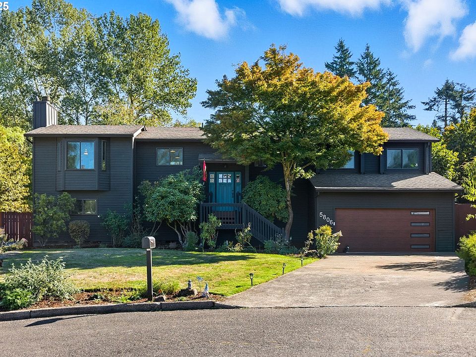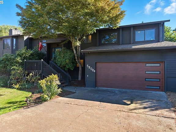 This beautiful NW contemporary home boasts updates galore and a great floor plan with ample living space. The upper level of this home has vaulted ceilings with beautiful wood detailing and living space reaching the distance of the home, from the open plan kitchen to the cozy living room with wood-burning fireplace, the home office and family room. This home is ideal for entertaining. The living space spills out on to two newly resurfaced decks, upper and lower level, that are ideally situated to take in the large yard, which backs to Dickinson Park. Upper deck has a natural gas hookup for a grill. Three bedrooms (and a bonus room/non-conforming 4th bedroom) are all on the lower level in a daylight basement which also orients toward the expansive backyard. They are spacious and light-filled, and the primary suite offers its own access to the back deck. The home has a remodeled kitchen, durable engineered bamboo floors throughout, a dedicated laundry room, updated electrical panel, new gas water heater (2024) and HVAC (2022). Located on a cul-de-sac in a wonderful neighborhood! [Home Energy Score = 1. HES Report at https://rpt.greenbuildingregistry.com/hes/OR10192331]