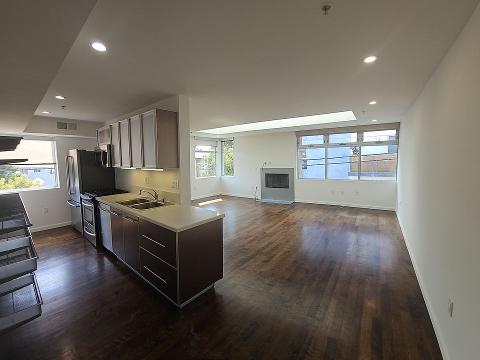 Beautiful 1-bedroom apartment close to Paramount Studios and a 5-minute walk to the historic, restaurant- and store-lined Larchmont Blvd. This modern 15-unit community is gated, with gated parking that includes two tandem spaces. There are also EV charging spaces for Tenants to use, and guest spaces. The living room is not only spacious but has a lot of windows for natural light, and also skylights that let the natural light in. There is a fireplace so you can enjoy those cozy evenings, and plenty of room for a dining table. The kitchen is equipped with a washer and dryer, a refrigerator, a microwave and gas range. There are adjustable shelving and plenty of cabinet space. The bedroom is good size, with a nice size closet. The bathroom is very modern with a deep soak tub and rain head shower. If all this isn't enough, go up to the roof top terrace, and enjoy an unobstructed view of city life. This unit is upstairs so no one above you. HOA is paid by landlord and includes the water and trash. Tenants only pay for electricity and gas, and renter's insurance is required. Small pets are welcome with a reasonable $75 per month pet rent. Close by shopping and eateries which include Salt & Straw, Jenni's, Larchmont Wine & cheese, Cafe Gratitude, Go Get Em Tiger, Clark Street and many more. Also, after you do some eating, and want to walk off a few calories, take a stroll and see some of the more beautiful homes in LA, walk a few blocks from Larchmont village a see some trolley spectacular architecture. This home is a must see!