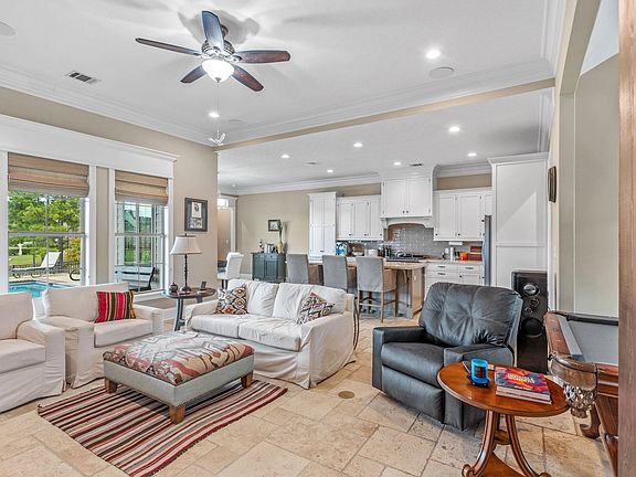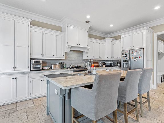 Elegant 4 bedroom, 3 bath home in Graywood's Willowbrooke neighborhood featuring a pool, spa, and waterfront views. Inside you'll find an open layout with a cozy fireplace, gourmet kitchen with granite counters and a 5-burner gas cooktop, and spacious primary suite with soaking tub, walk-in shower, and custom closet. Outdoors is made for entertaining with a full outdoor kitchen, covered patio, and sparkling pool overlooking the water.