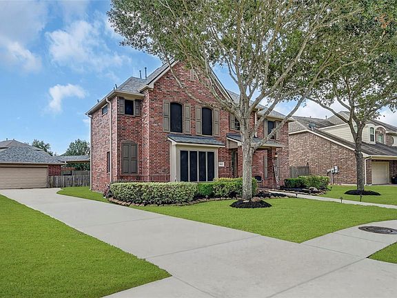 Don't miss your chance to explore this stunning custom David Powers home in the highly sought-after Lawrence Place! This spacious residence boasts over 3,500 sq ft, featuring 4 bedrooms and 3.5 baths. The primary bedroom is conveniently located on the ground floor with a massive closet. The expansive kitchen seamlessly flows into a large living room adorned with an upgraded stone fireplace. Upstairs, you'll discover 3 additional bedrooms, 2 bathrooms, and a generous game room perfect for family fun. With over 10,000 sq ft lot, ample space to install a pool. Zoned to Pearland ISD. Never flooded and low taxes. Recent Upgrades Include: Installation of 2 new AC units (upstairs and downstairs). New carpet in 2022. Brand new roof and gutters in 2023. Tankless water heater, custom window solar screens, whole home wired for back up generator, water filtration system and front yard professional landscaping in 2024.