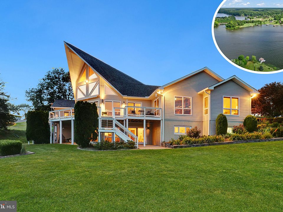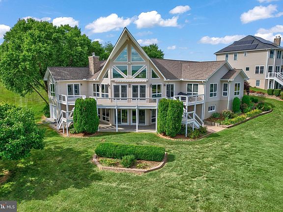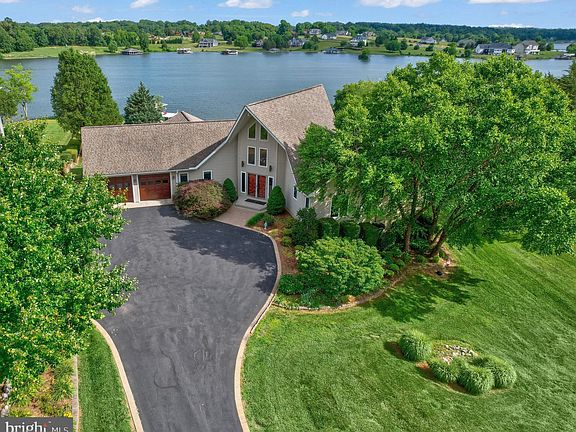 Welcome home to 5807 Blue Ridge Road at Lake Anna! This spectacular, custom designed home sits perfectly on an acre of land with approx 260 feet of waterfront! These original homeowners boast a ton of pride of ownership throughout this 5200 finished square foot home. As you enter the home, you are greeted with 180 degree views of the lake. The homeowners have loved the versatility, which lends itself to entertaining. The additional rooms accommodate visiting overnight guests. The 30 foot high ceilings and architectural shaped windows in the main area allow the natural light to flow through the open floor plan which makes this the heart of the home. Enjoy sitting in front of the wood heatilator fireplace, eating and gathering in the dining area, watching tv in the built-in entertainment center, and relaxing in front of the wonderful views. Top down-bottom up cordless honeycomb cellular shades are installed and built-in wall sconces with dimmers, add to the character. From the main room, step out on the huge deck which is the length of the back of the home. The renovated kitchen includes granite countertops, an electric cooktop, dual wall ovens, subway tile backsplash, huge walk-in pantry, and a kitchen island with pendant lighting. The office has two walls of custom cherrywood built-in bookcases and again wonderful views of the water. The spacious primary bedroom suite has a ceiling fan, custom built walk-in closet and views of the lake. The primary bathroom has a jacuzzi tub, walk-in shower, tile flooring, and two stained glass windows. Lighting is brought in during the day via a solar tube. The second bedroom at the other end of the house has french doors leading to the spacious deck with water views. The third bedroom is also located on the main level at the other end of the home with views of the lush front yard. Both of these bedrooms have ceiling fans and ample closet space. A full bathroom is located between them. Conveniently located off the kitchen is a laundry area, and mud room that leads to a two car garage. Step on down to the fully finished basement/family room for even more space. The back wall of floor-to-ceiling windows looking to the lake, recessed lighting on dimmer switches, and multiple ceiling fans make this another level of entertainment. The wood stove is nestled in a corner to provide extra warmth on those cold days. The wet bar comfortably seats 5 and there are multiple areas for game tables. There is a great room ready to be a movie theater room w/speaker wires already in place. To boast there is an exercise room, craft room, and a workshop area. The third full bathroom is located here with a huge walk-in shower, jets and a tile seat that is great for rinsing off. You will appreciate more garage space, with epoxy flooring, located down here where you can park anything from lawn tractors to your boat. From the basement, you can walk out to the patio for outdoor entertainment, and make your way down to the dock. Enjoy the mature landscaping surrounding the home. Some additional features include a portable backup generator, water treatment system, alarm system, Fiberlink internet service, and raised flower beds in the yard. Recent updates include: upgraded deck and railings (2023), two new Trane HVAC units (2021), washer & dryer, primary built-in closet, built-in pantry, driveway, and front entry (2020), new roof w/ 50 year shingles and gutters (2016), new roof with 30 year shingles for the boathouse (2016), renovated Kitchen (2015), 80 gallon hot water heater & circulating pump (2010). Enjoy the sunsets sitting on your own dock overlooking the grand view of Lake Anna. It's approximately 8 feet deep at the ladder on the dock and one boat slip in your covered boat house and approved plans to add another slip. This home is just half a mile from Route 522, and centrally located to Fredericksburg, Richmond, and Charlottesville. Hop on your boat to local dining. The lakefront lifestyle is calling your name!