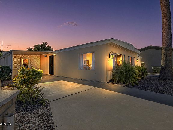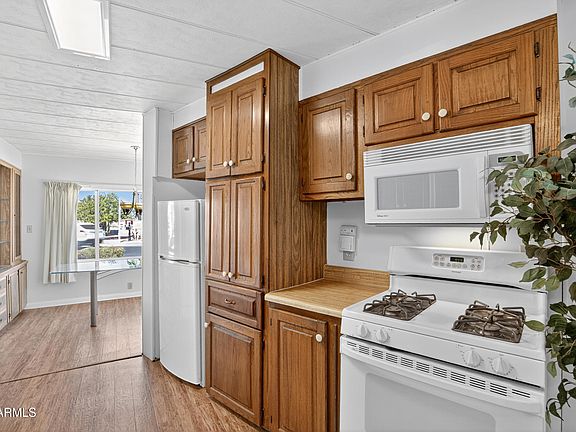 Welcome to Apache Wells, a 55 plus community known for neighborly charm and an easy, active lifestyle. This home offers a great room layout with a formal dining area, two bedrooms, two baths, and an Arizona room. Luxury vinyl plank flooring runs throughout. The kitchen features a gas range, built in microwave, plentiful cabinets, a wet bar area, and drinking water filtration. The owners suite includes two walk in closets. There is also a separate storage room or workshop. Covered parking included.