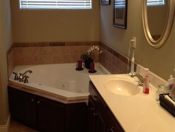 Newer home has it all. Great master suite w/ jetted corner tub, stand alone shower, walk-in closet. Living room w/ custom corner gas fireplace, 10 ft. ceilings that continue into Dining area and Kitchen. 42' cabinets in Kitchen and custom hand-made island. 18' tile, custom upgraded trim package make this a must see home.